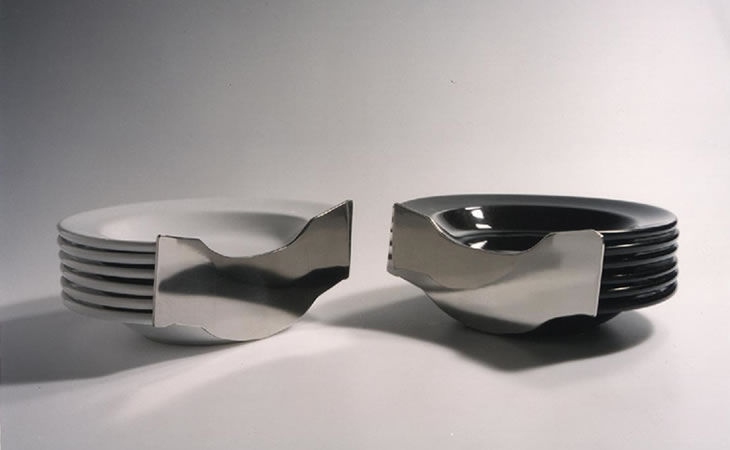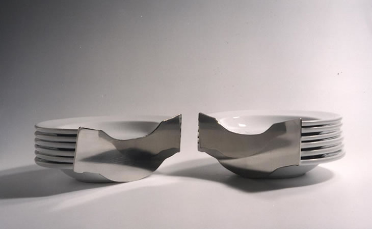 2003 | 2003 | Objeto. Platos de loza cortados y acero inoxidable | 56 x 28 x 12 cm