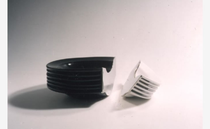 2004 | 2004 | Objeto. Platos de loza cortados y acero inoxidable | 35 x 28 x 12 cm
